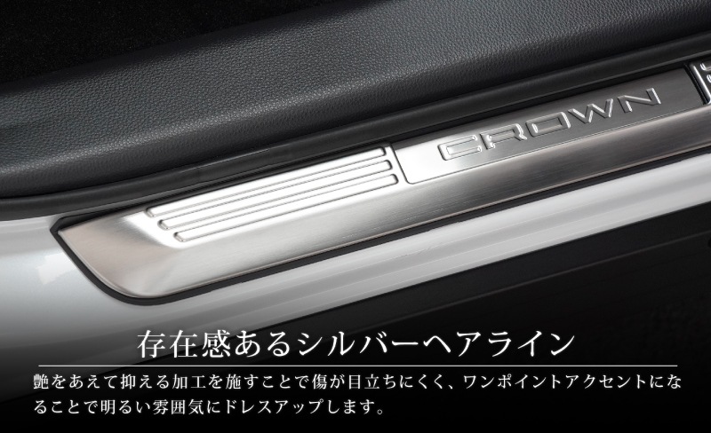 クラウンクロスオーバー サイドステップ 内側スカッフプレート 4P 選べる3色 シルバー ブラック カーボン調|TOYOTA トヨタ CROWN CROSSOVER TZSH35 AZSH35 専用 内装 保護 足元 カスタム パーツ ドレスアップ オプション アクセサリー 社外品【予約販売/シルバー・ブラック・カーボン調:1月30日頃入荷予定】
