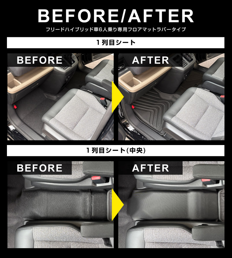 トップ > HONDA ホンダ > FREED(フリード) GT系 (令和6年6月〜) > 内装パーツ FREED(フリード) GT系 (令和6年6月〜) > 新型フリード GT系 エアー クロスター フロアマット ハイブリッド車 6人乗り専用 ラバータイプ 5P ブラック|ホンダ HONDA FREED AIR CROSSTAR 専用 カスタム パーツ ドレスアップ アクセサリー フロント リア 1列目 2列目 3列目 3D フルカバー セット ラバーマット カーマット 内装 保護 傷防止 社外品