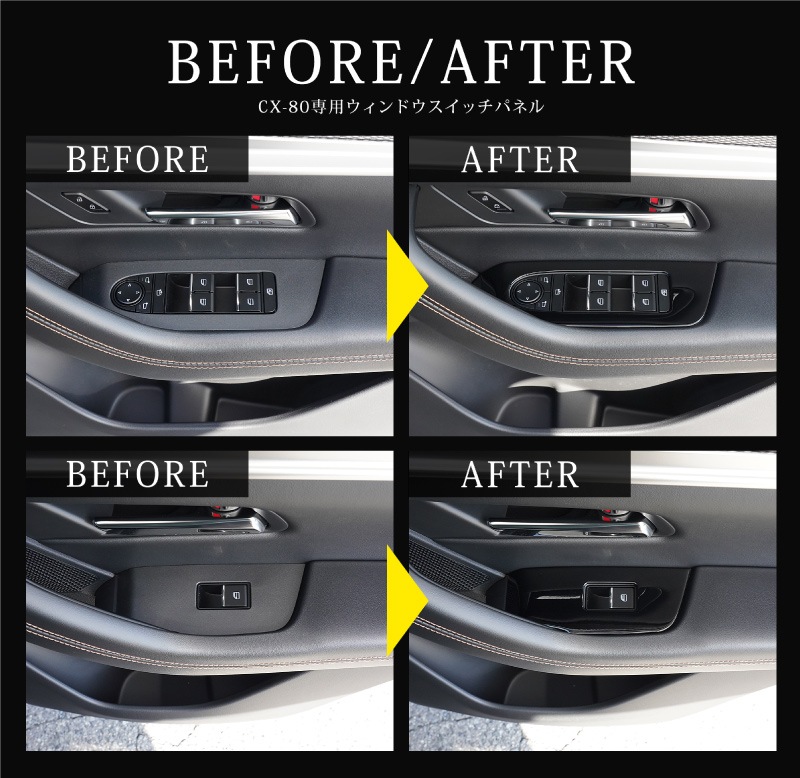 トップ > すべての商品 > CX-80 KL系 ウィンドウスイッチ周り インテリアパネル 左右セット 4P ピアノブラック|マツダ MAZDA CX80 専用 内装 インテリア スイッチ パネル カスタム パーツ ドレスアップ アクセサリー 社外品