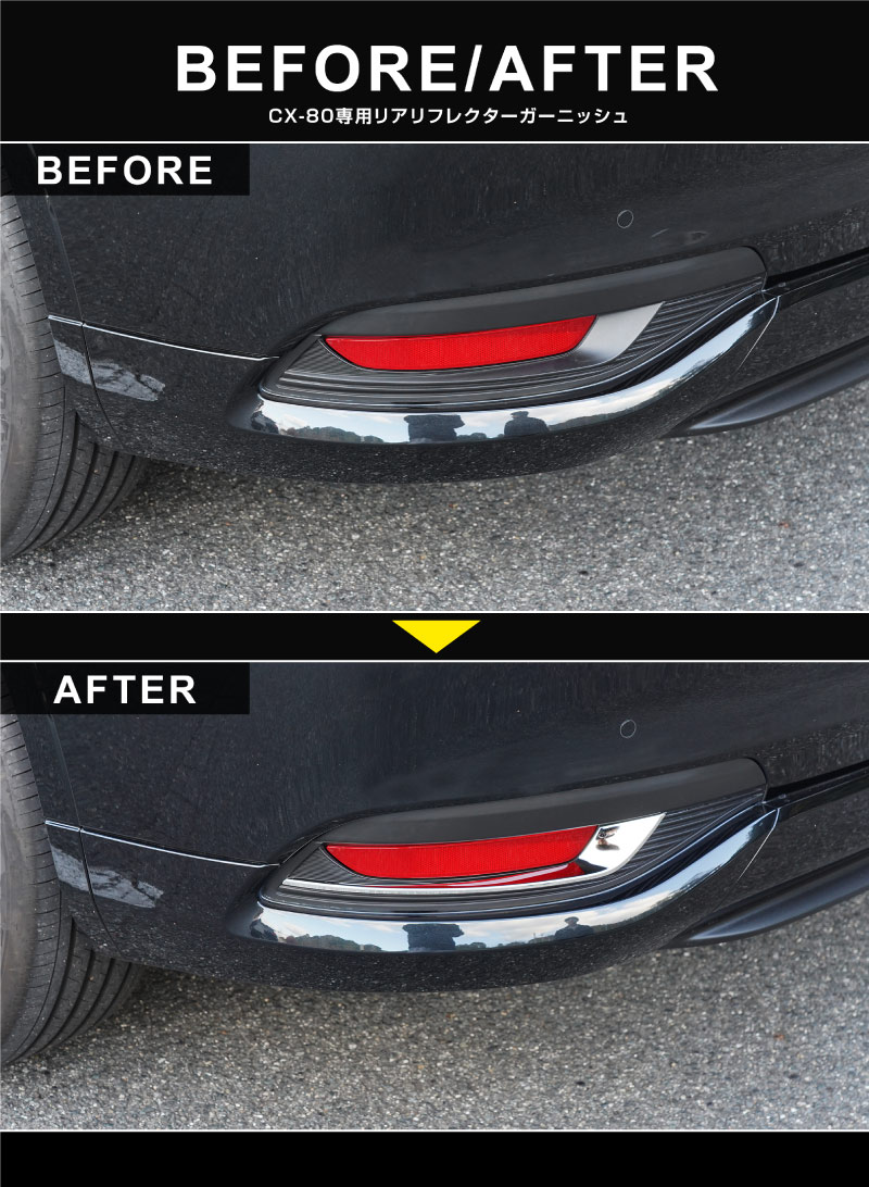 【セット割】CX-80 KL系 リアリップガーニッシュ & リアリフレクターガーニッシュ 3P 鏡面仕上げ|マツダ MAZDA CX80 専用 外装 カスタム パーツ ドレスアップ アクセサリー オプション エアロ 外装 バックドア リア 保護 カー用品 社外【予約販売/12月10日頃入荷予定】
