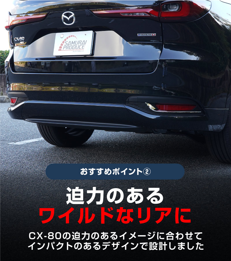 CX-80 KL系 リアリップガーニッシュ 1P 選べる2カラー 鏡面仕上げ ブラック鏡面仕上げ|マツダ MAZDA CX80 専用 外装 カスタム パーツ ドレスアップ アクセサリー オプション エアロ 外装 バックドア リア 保護 カー用品 社外