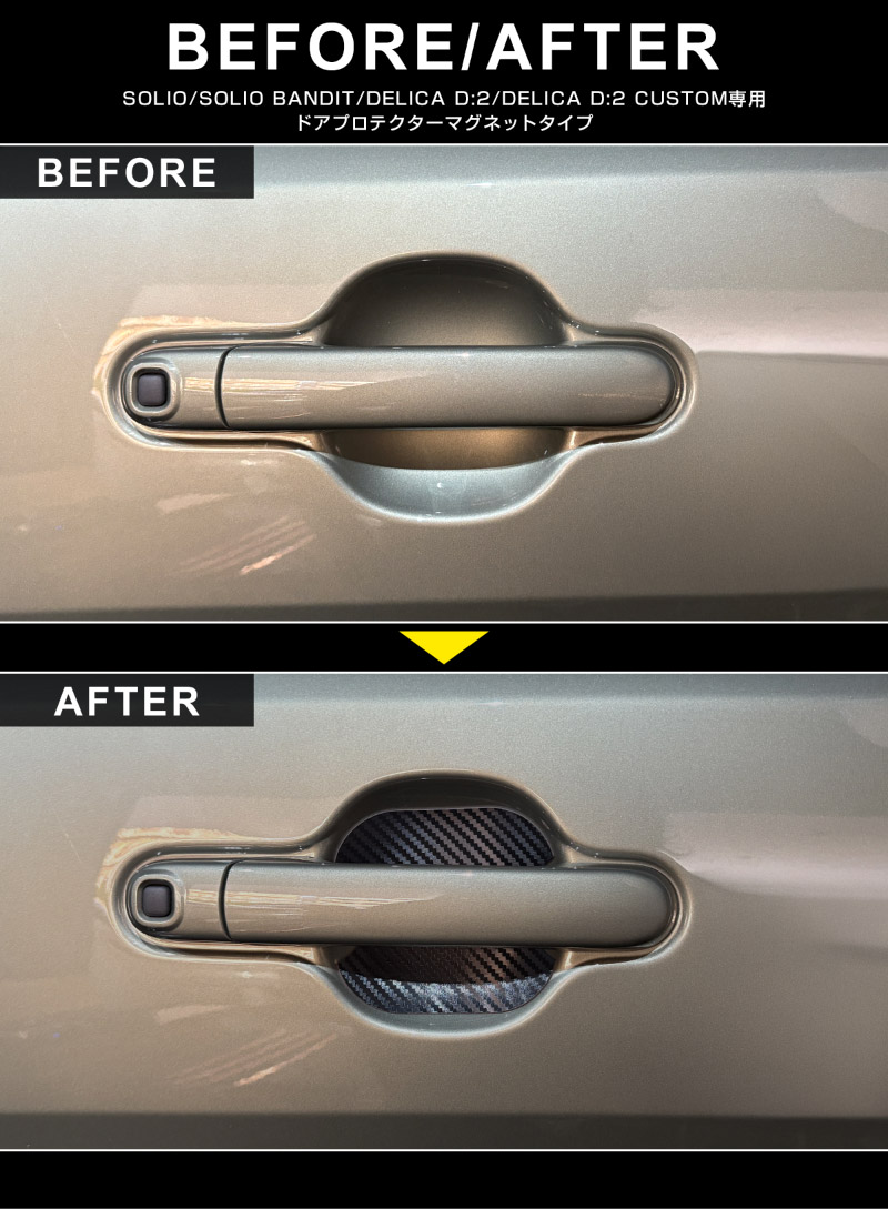 トップ > SUZUKI スズキ > ソリオ/ソリオ バンディット【2025(令和7)年1月〜】SOLIO BANDIT MAD7S > 内装パーツ ソリオ/ソリオ バンディット【2025(令和7)年1月〜】SOLIO BANDIT MAD7S > 新型ソリオ ソリオバンディット デリカD:2 デリカD:2カスタム ドアハンドルプロテクター マグネットタイプ 4P カーボン柄 ブラック/ホワイト|スズキ SUZUKI SOLIO BANDIT MAD7S MA47S MA37S MA27S 三菱 MITSUBISHI DELICA D2 CUSTOM・・・ 引っかき傷防止 傷隠し 保護 ドレスアップ アクセサリー 社外品 エアロ【メール便対象/代引き・配達日時指定不可】