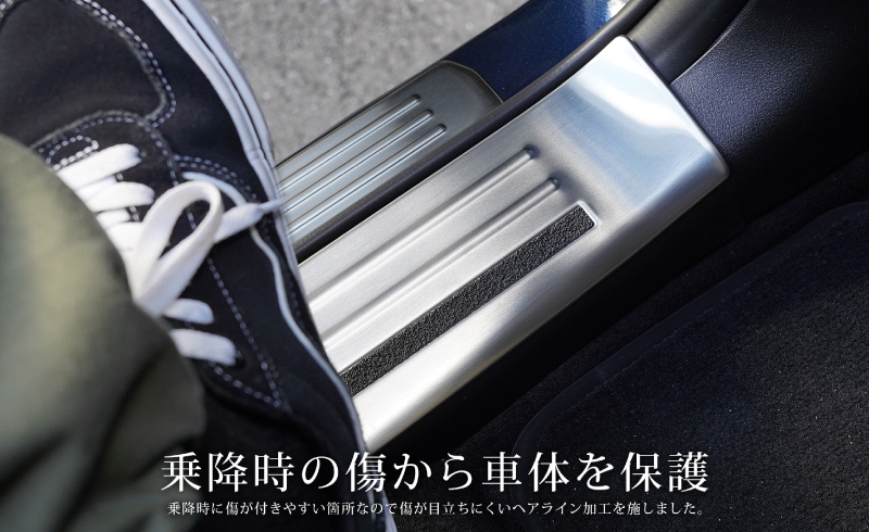 CX-80 KL系 スカッフプレート サイドステップ内側 フロント・リアセット 4P 滑り止め付き ブラックヘアライン|マツダ MAZDA CX80 専用 内装 カスタム パーツ ドレスアップ アクセサリー オプション 内装 社外 保護 傷防止 キズ隠し