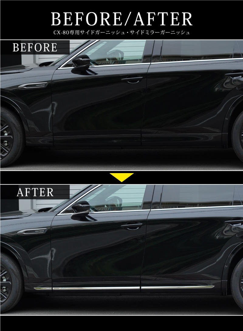 CX-80 KL系 サイドガーニッシュ 左右セット 6P 鏡面仕上げ|マツダ MAZDA CX80 専用 カスタム パーツ ドレスアップ アクセサリー オプション エアロ 外装 サイドドア カー用品 社外