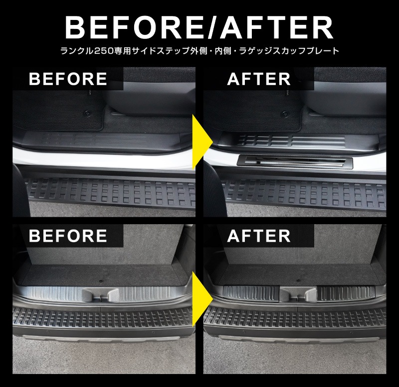 新型ランドクルーザー ランクル250 7人乗り車 専用パーツ ラゲッジスカッフプレート 2P 車体保護ゴム付き ブラックヘアライン|トヨタ ランクル TOYOTA LANDCRUISER 250系 専用 カスタム パーツ ドレスアップ アクセサリー オプション 内装 社外 トランク 保護【予約販売/2月28日頃入荷予定】