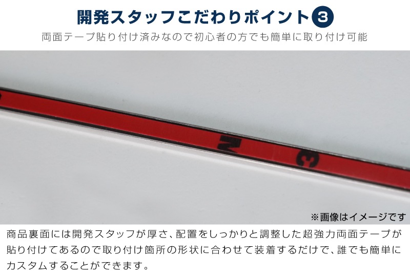 お取り付けは裏側に装着済みの両面テープで貼るだけでどなたでも簡単に装着していただけます。 |