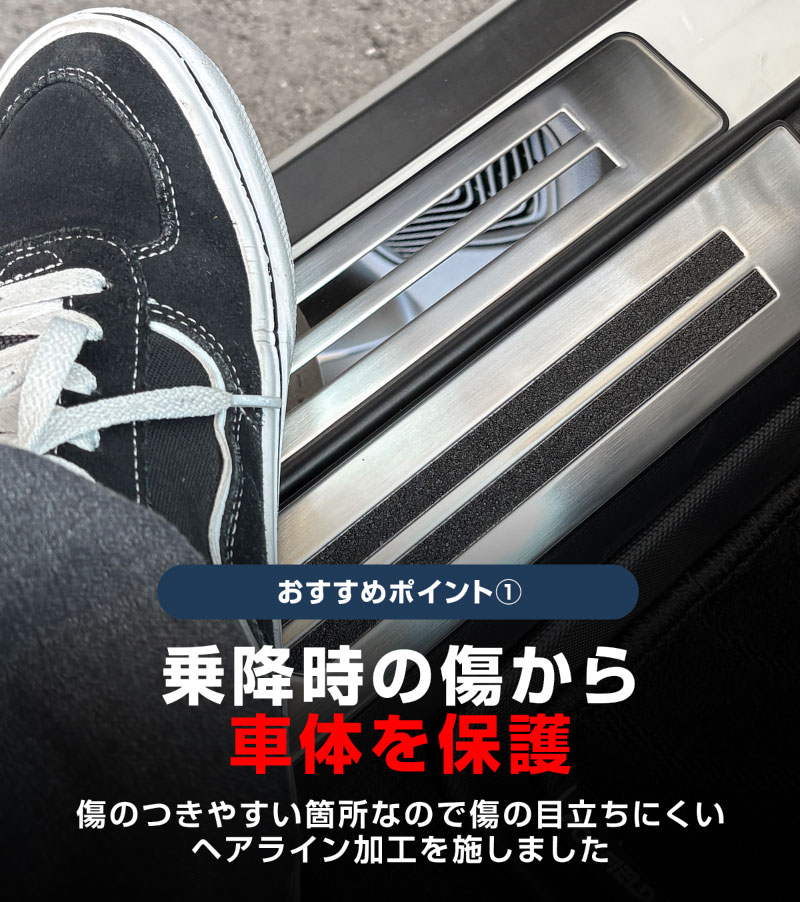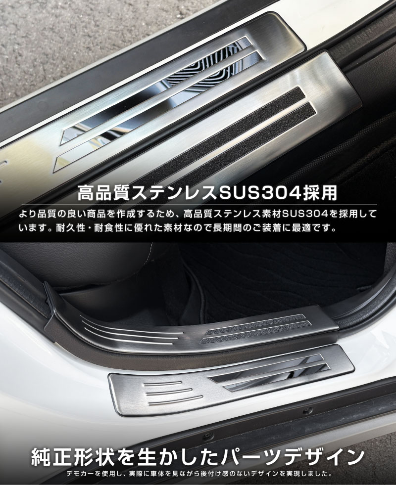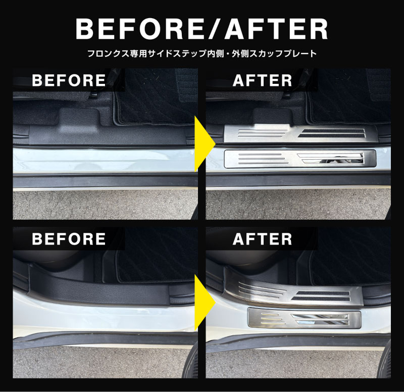 フロンクス スカッフプレート サイドステップ内側 フロント・リアセット 4P 滑り止め・車体保護ゴム付き 選べる3カラー シルバーヘアライン ブラックヘアライン カーボン調|スズキ SUZUKI FRONX WDB3S WEB3S 専用 カスタム パーツ ドレスアップ アクセサリー オプション 内装 社外 保護 傷防止 キズ隠し【予約販売/シルバー:2月28日頃入荷予定】