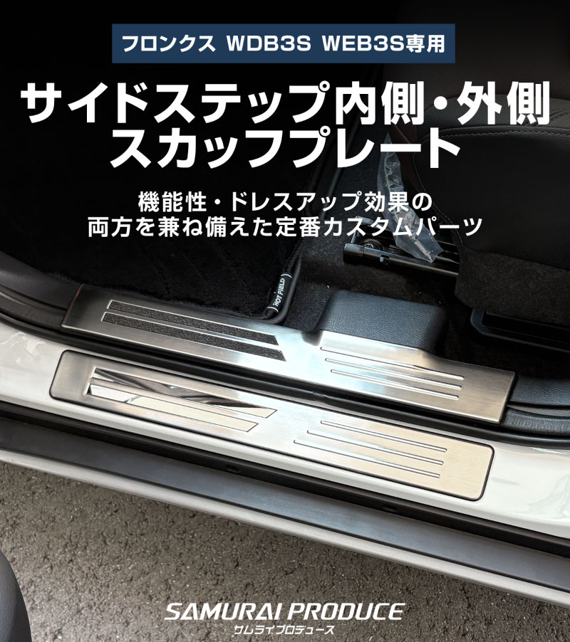 トップ > SUZUKI スズキ > フロンクス【2024(令和6)年10月〜】FRONX > 内装パーツ フロンクス(FRONX)【2024(令和6)年10月〜】 > 【セット割】フロンクス スカッフプレート サイドステップ内側&外側 フロント・リアセット 8P 選べる3カラー シルバーヘアライン ブラックヘアライン カーボン調|スズキ SUZUKI FRONX WDB3S WEB3S 専用 カスタム パーツ ドレスアップ アクセサリー オプション 内装 社外 保護 傷防止 キズ隠し【予約販売/シルバー:2月28日頃入荷予定】