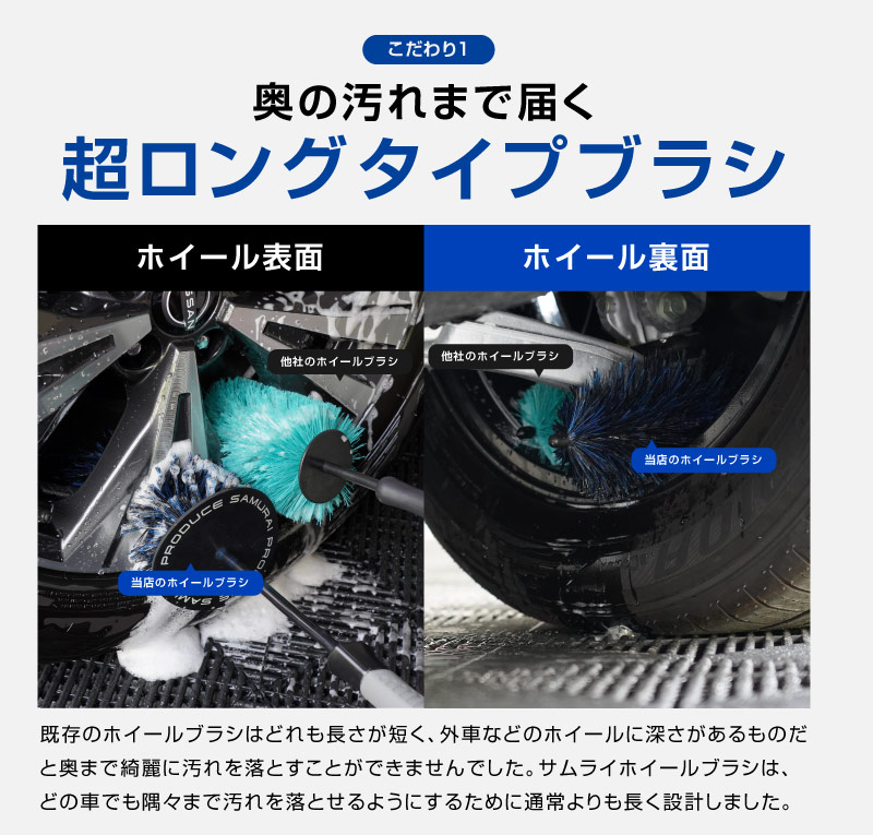 サムライ ホイールブラシ Lサイズ Sサイズ お得な2本セット 適度な硬度で汚れを効果的に除去 洗車ブラシ タイヤブラシ ハブ用ブラシ キズ防止
