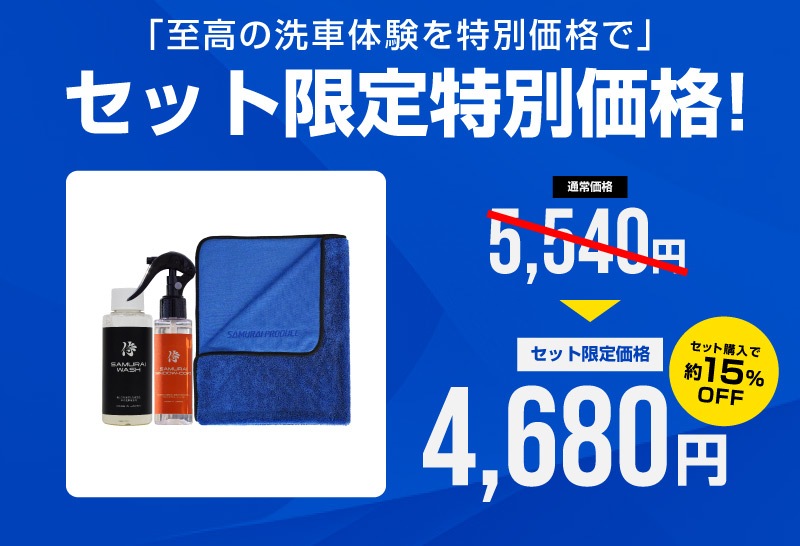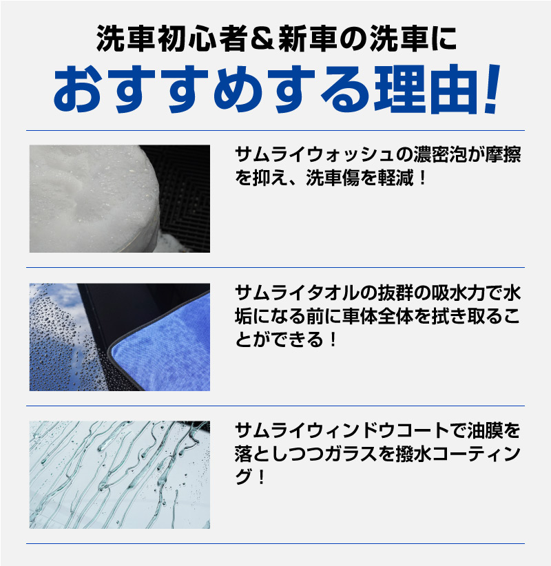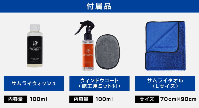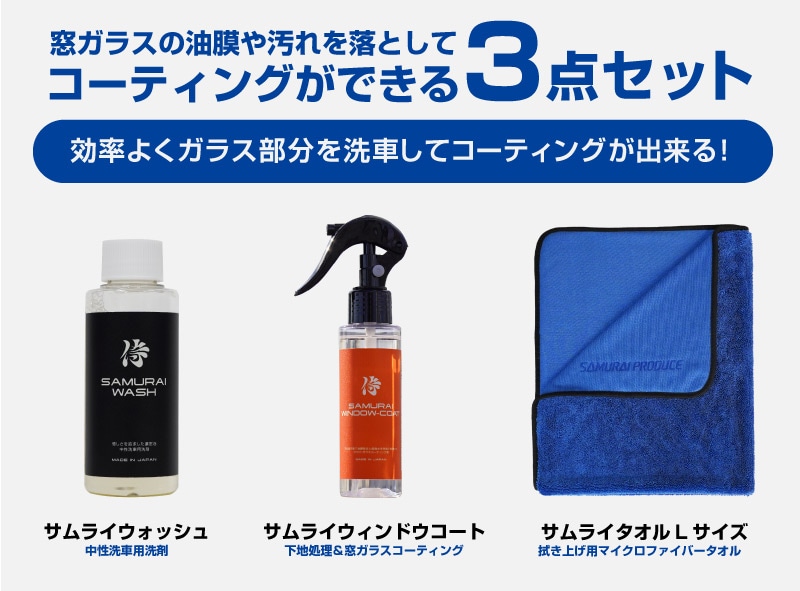 トップ > サプライ品 > 洗車・カーケア用品・カーメンテナンス > サムライプロデュースオリジナル > 【セット割】【ガラス洗車・コーティングセット】サムライウォッシュ 濃密泡カーシャンプー 100ml & サムライウィンドウコート 100ml & 超吸水 サムライタオル 大判 Lサイズ 70cm×90cm 撥水 油膜除去 洗車用品 中性 全車色対応 コーティング車 OK ノーコンパウンド