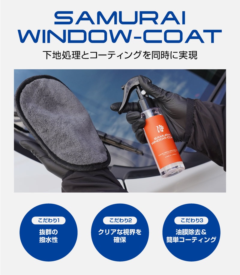 サムライウィンドウコート WINDOW COAT 100ml フロントガラス撥水コート サムライミット付属|ガラスコーティング 撥水 油膜除去 洗車用品 カー用品 メンテナンス用品 洗車グッズ メンテナンス用品 ケア用品 カー用品 洗車用品 カーケア用品 ケミカル用品 撥水効果