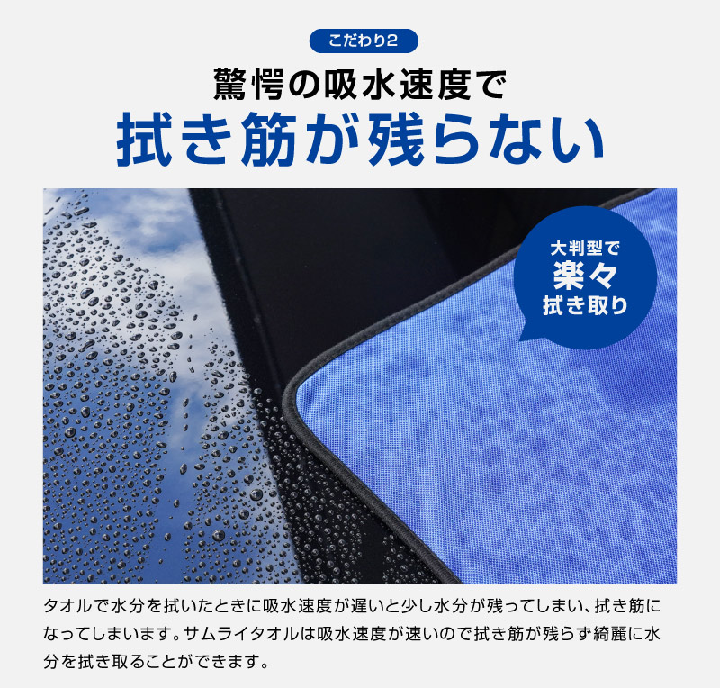 超吸水 サムライタオル Lサイズ 70cm×90cm & ディテーリングタオル 40cm×40cm マイクロファイバータオル サムライプロデュースオリジナル 洗車タオル 洗車の拭き上げに最適なタオルセット