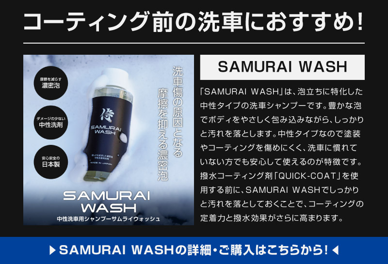 サムライウォッシュ 濃密泡カーシャンプー 100ml|希釈タイプ 中性 全車色対応 コーティング車OK ノーコンパウンド 新車・初めての洗車に最適 泡洗車 自動車用洗浄剤 洗車用