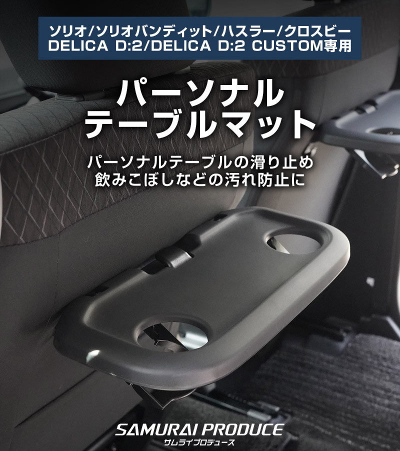 トップ > すべての商品 > 新型ソリオ ソリオバンディット ハスラー クロスビー デリカD:2 デリカD:2カスタム パーソナルテーブルマット 2P ブラック|スズキ SUZUKI SOLIO BANDIT MAD7S 5AA-MA37S 5BA-MA27S MA27S MA37S HUSTLER MR52S MR92S XBEE MN71S 三菱 MITSUBISHI DELICA D2 CUSTOM 専用 保護 パーツ 防水 ゴム素材 収納 オープントレイ マット 社外