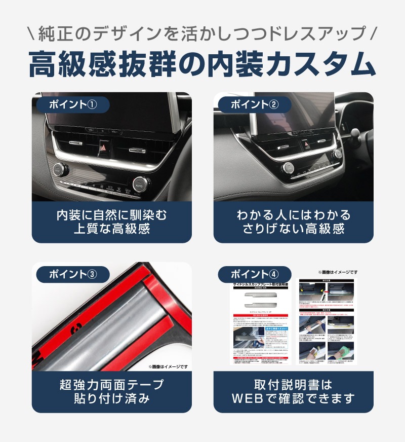 新型カローラクロス サイドステップ 内側スカッフプレート 滑り止め付き フロント・リアセット 4P 選べる2色 シルバー/ブラック 2025年マイナーチェンジ後対応|トヨタ TOYOTA COROLLA CROSS 6AA-ZVG11 3BA-ZSG10 6AA-ZVG15 専用 カスタム パーツ ドレスアップ アクセサリー 社外品