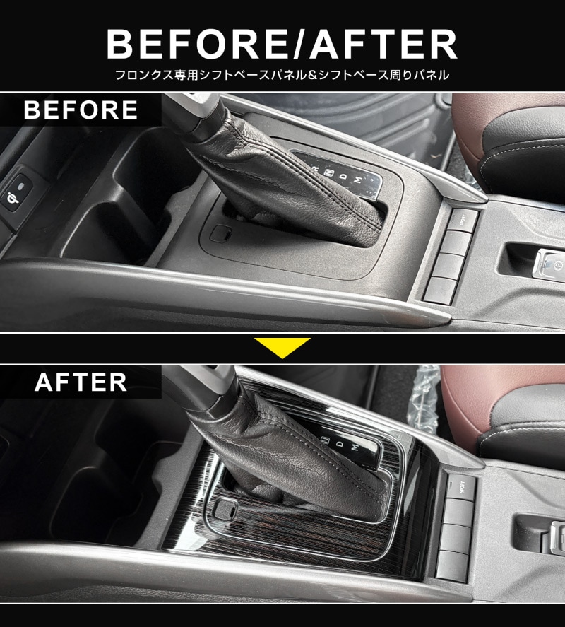 フロンクス シフトベースパネル 1P 選べる2カラー サテンシルバー ブラックヘアライン|スズキ SUZUKI FRONX WDB3S WEB3S 専用 カスタム パーツ ドレスアップ アクセサリー オプション インテリア パネル メッキモール 内装 カー用品 社外 保護 カバー キズ隠し 傷防止【メール便対象/代引き・配達日時指定不可】