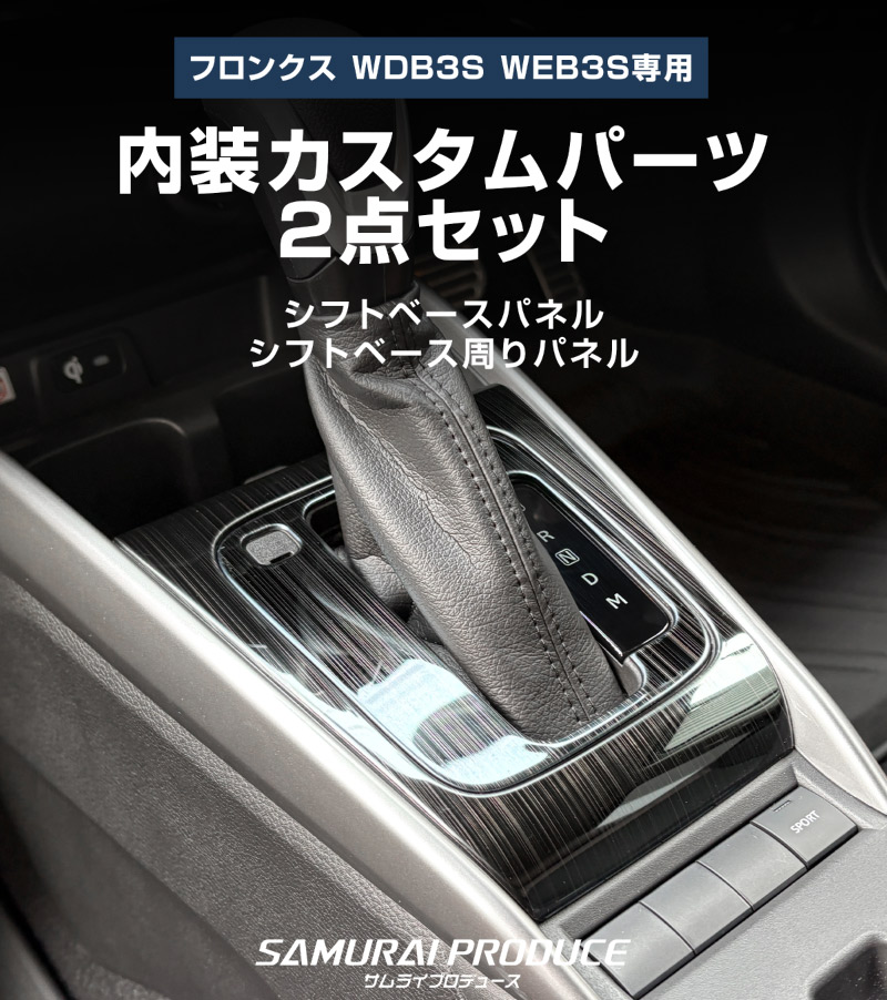 トップ > SUZUKI スズキ > フロンクス【2024(令和6)年10月〜】FRONX > 内装パーツ フロンクス(FRONX)【2024(令和6)年10月〜】 > 【セット割】フロンクス シフトベース & シフトベース周りパネル 2P 選べる2カラー サテンシルバー ブラックヘアライン|スズキ SUZUKI FRONX WDB3S WEB3S 専用 カスタム パーツ ドレスアップ アクセサリー 保護 インテリア フロント パネル カバー 社外