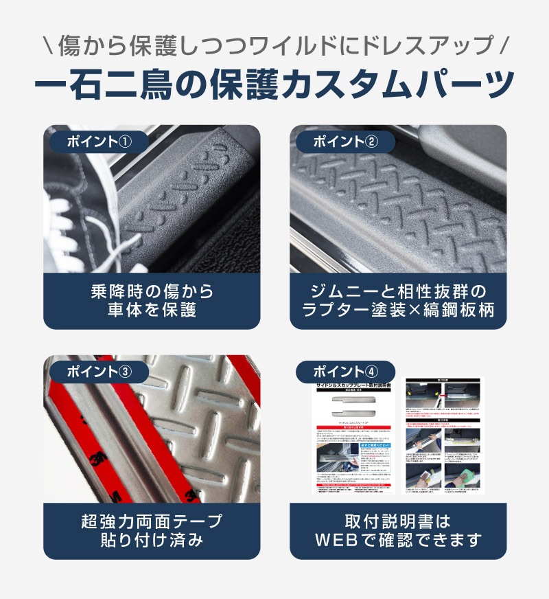 ジムニー JB64 ジムニーシエラ JB74 スカッフプレート 縞鋼板柄 左右セット 2P ラプター塗装 ブラック|JIMNY JB64W JIMNY SIERRA JB74 専用 サイドステップ スカッフプレート 保護パーツ ラプター塗装 ドレスアップ アクセサリー オプション 社外品