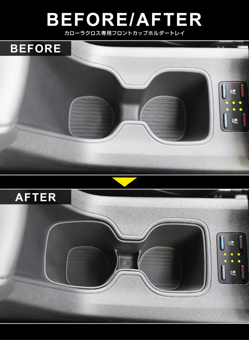 新型カローラクロス フロントカップホルダーパネル 1P ピアノブラック 2025年マイナーチェンジ後専用 |トヨタ TOYOTA COROLLA CROSS 6AA-ZVG16 専用 パーツ 防水 水洗い 取り付け簡単 オプション アクセサリー 内装 コップ カップホルダー トレイ カバー オプション 保護 傷防止 社外【予約販売/2月28日頃入荷予定】