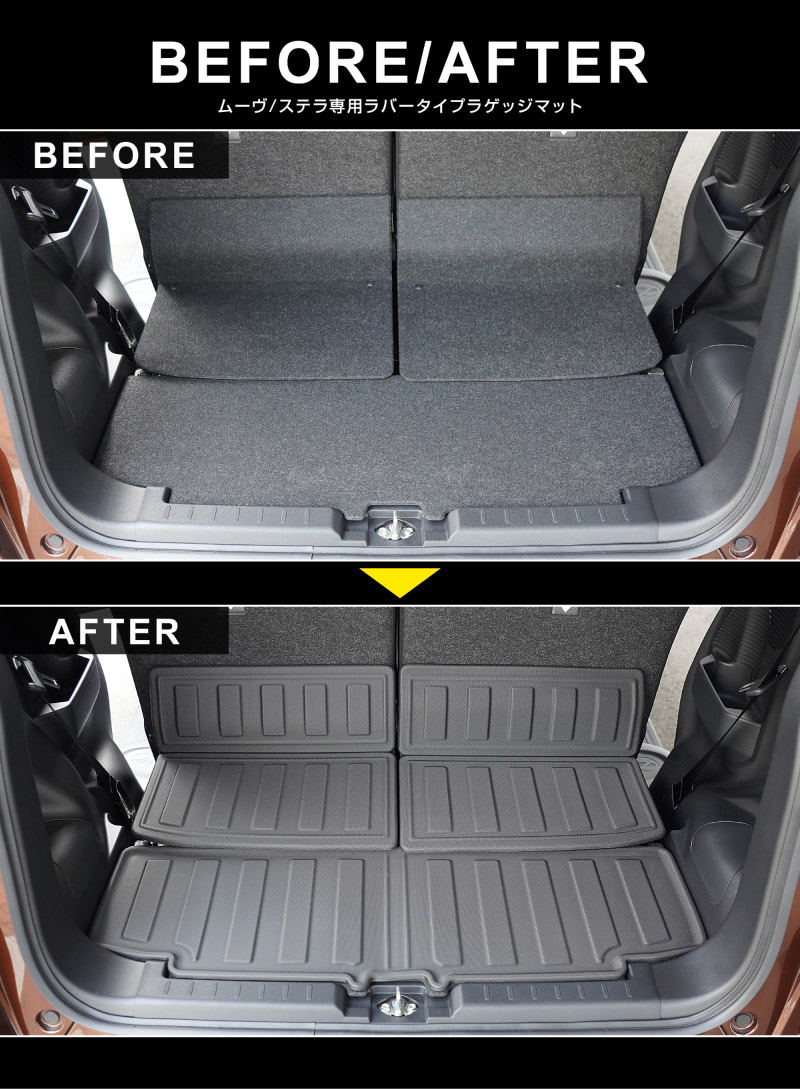 新型ムーヴ ステラ LA850S LA860S ラゲッジマット カーゴトレイマット 5P ラバータイプ|ダイハツ DAIHATSU MOVE スバル SUBARU STELLA 専用 保護 パーツ 防水 アクセサリー 内装 社外 トランク フロアマット カーマット 防水 保護