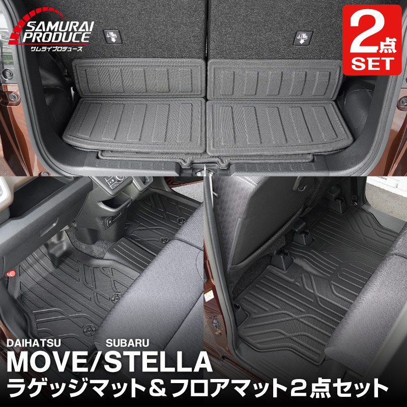 【セット割】新型ムーヴ ステラ LA850S LA860S 2WD車専用 フロアマット & ラゲッジマット カーゴトレイマット セット 9P ラバータイプ|ダイハツ DAIHATSU MOVE スバル SUBARU STELLA 専用 保護 パーツ 防水 アクセサリー 内装 社外 トランク 3D フロアマット カーマット 防水 保護