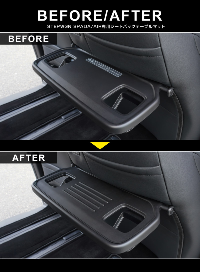 新型ステップワゴン専用設計のバックテーブルマットと、運転席・助手席インテリアトレイ用マットをセットにしたインテリアマットセットです。