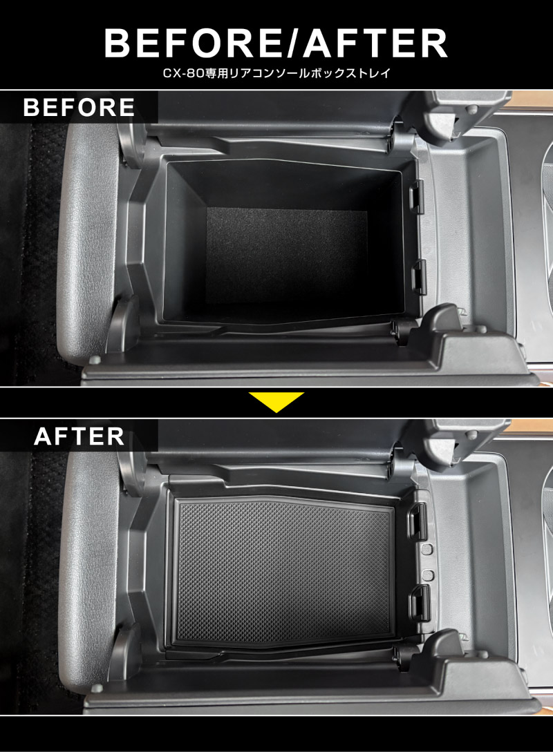 CX-80 KL系 6人乗り リアコンソールボックストレイ 1P ブラック 滑り止めゴムマット付き|マツダ MAZDA CX80 内装 カスタム パーツ アクセサリー ドレスアップ オプション インテリア 内装 トレイ 収納 小物入れ カー用品 社外 保護 傷防止