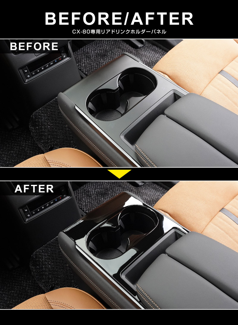 CX-80 KL系 6人乗り リアドリンクホルダーパネル 1P ピアノブラック|マツダ MAZDA CX80 キャプテンシートタイプ 専用 カスタム パーツ ドレスアップ アクセサリー オプション インテリア パネル 内装 カー用品 社外 保護 傷防止 キズ隠し