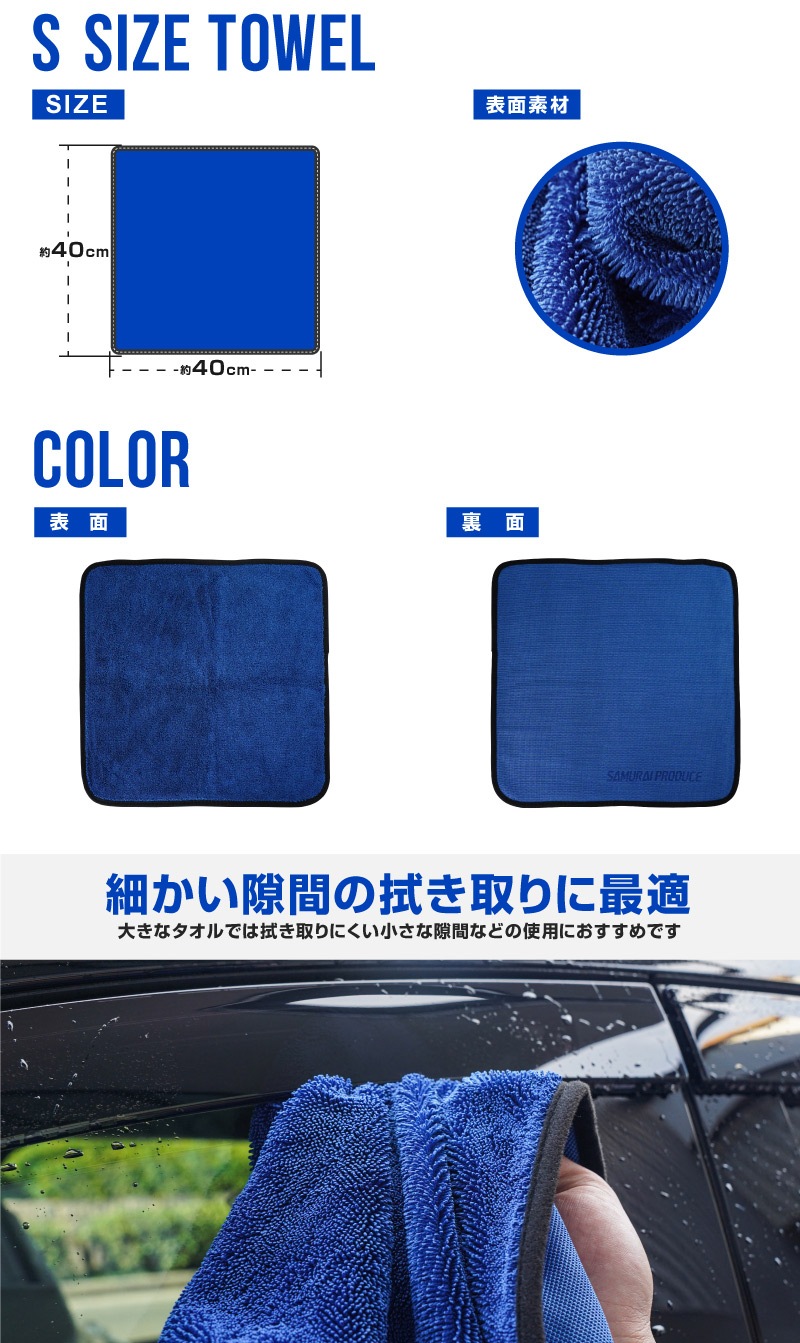 超吸水 サムライタオル Mサイズ 45cm×75cm & ディテーリングタオル 40cm×40cm マイクロファイバータオル サムライプロデュースオリジナル 洗車タオル 超吸水 拭き上げに最適なタオルセット