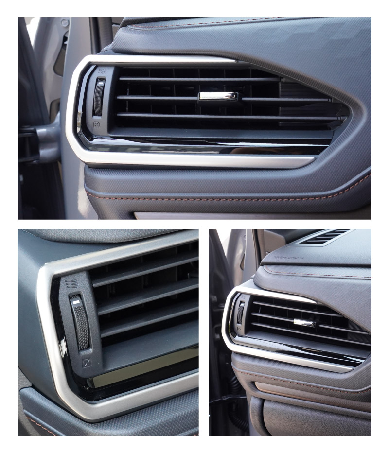 新型フォレスター専用設計のフロント左右エアコン吹き出し口に装着するインテリアパネルです。
