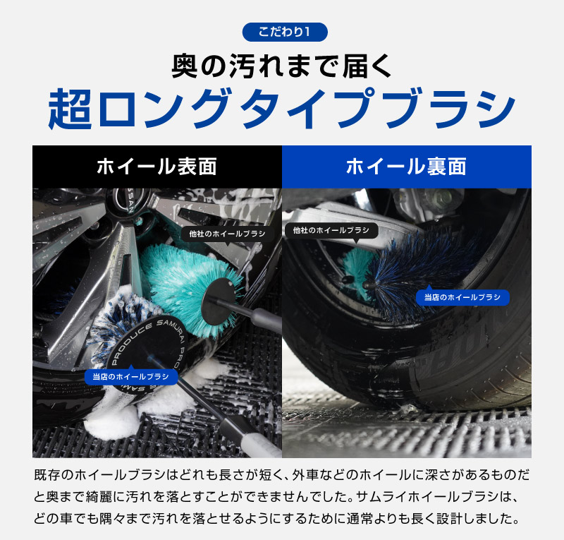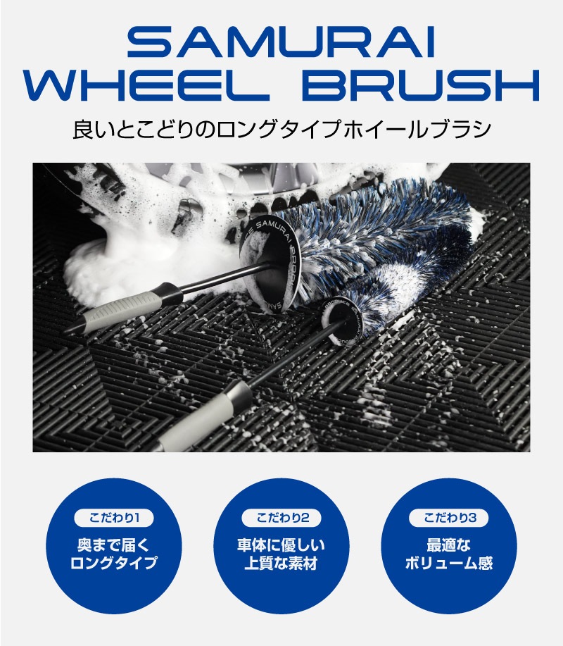 【2/23迄 10%off】サムライ ホイールブラシ Lサイズ Sサイズ お得な2本セット 適度な硬度で汚れを効果的に除去 洗車ブラシ タイヤブラシ ハブ用ブラシ キズ防止